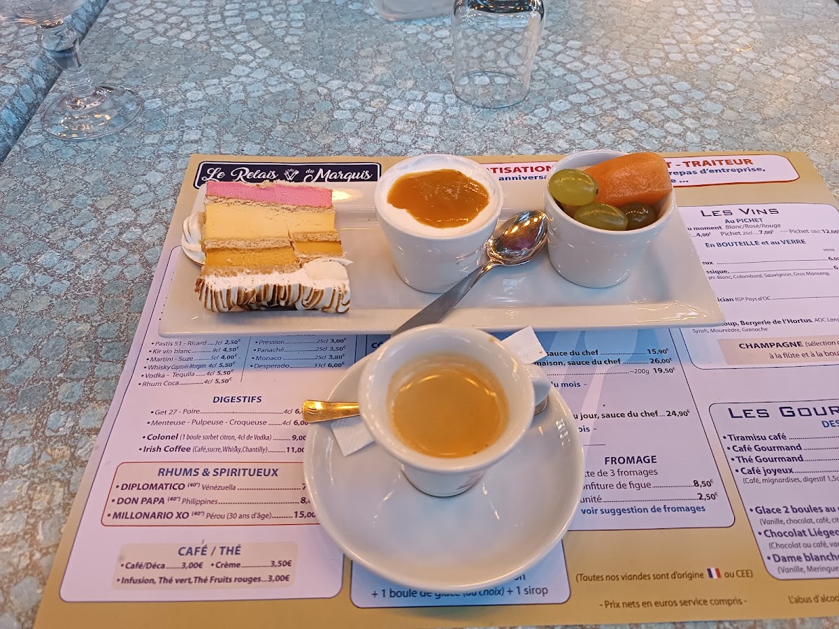 The menu at Le Relais Du Marquis reflects a clear commitment to classic French comfort cooking, built around simple ingredients treated with care and consistency. The standout Filet Mignon de Porc Tagliatelles Sauce Tomate Maison anchors the menu with a satisfying balance of tenderness and richness, where the pork is cooked to remain juicy and well-seasoned, paired naturally with tagliatelles coated in a house-made tomato sauce that feels rustic rather than heavy. This dish sets the tone for a menu that values honest flavors over unnecessary complexity. Seafood lovers are well served by the Gambas Persillade, a straightforward yet aromatic preparation that highlights the natural sweetness of the prawns, enhanced by garlic and parsley without overwhelming the palate. To close the meal, the Dame Blanche offers a familiar and comforting dessert option, combining smooth ice cream with chocolate sauce in a way that feels indulgent yet timeless. Taken together, these dishes summarize a menu designed for enjoyment and reliability, where portions are generous, flavors are accessible, and each plate contributes to a cohesive dining experience rooted in tradition and approachability.